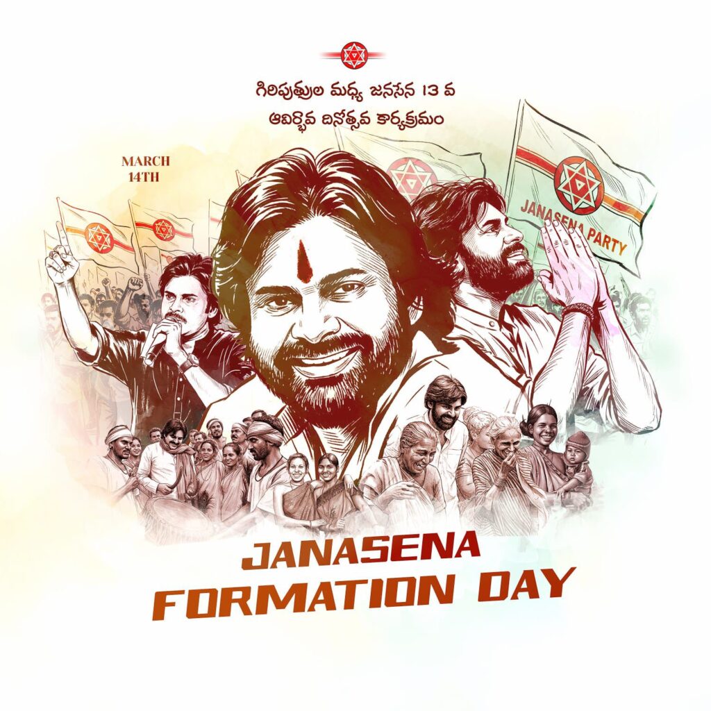జనసేన పార్టీ 13వ ఆవిర్భావ దినోత్సవం సందర్భంగా ఆంధ్రప్రదేశ్ ముఖ్యమంత్రి నారా చంద్రబాబు నాయుడు పార్టీ అధ్యక్షుడు, డిప్యూటీ సీఎం పవన్ కళ్యాణ్ కి తెలిపారు. రాష్ట్ర అభివృద్ధిలో, తెలుగు ప్రజల ఆకాంక్షలను నెరవేర్చడంలో జనసేన పార్టీ పోషిస్తున్న పాత్ర అభినందనీయమని సీఎం పేర్కొన్నారు. ప్రజలకు అండగా నిలుస్తూ వారి భవిష్యత్ కోసం పనిచేస్తున్న జనసైనికులు, వీరమహిళలు, పార్టీ నాయకులకు ఆయన అభినందనలు తెలిపారు.